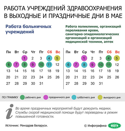 Работа учреждений здравоохранения в выходные и праздничные дни в мае 22.04.2019 shumilino515 Продолжить чтение