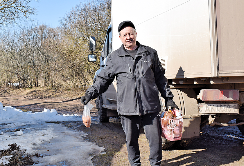 Разам з аўталаўкай мы пабывалі ў некаторых вёсках і даведаліся, што купляюць людзі. У Лялюгах, напрыклад, адзін з хадавых тавараў – бульба. Вяскоўцы расказалі, што вырашчаную на сваім агародзе ўжо з’елі (летась быў дрэнны ўраджай), вось і купляюць у аўтамагазіне па 1,01 руб. за кілаграм. А ўвогуле бяруць усё – малако, хлеб, каўбасу, макарону, муку.