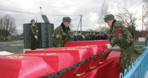 Праз 65 год у іх гонар іграе жалобныя маршы ваенны духавы аркестр, застылі ў каравуле сённяшнія ваеннаслужачыя і піянеры Беларусі, людзі схілілі галовы, многія не тояць слёз. А ў неба ляцяць ружэйныя залпы і малітва бацюшкі аб спачыне душ загінуўшых.