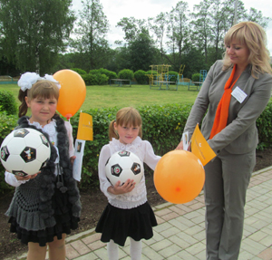 Набірацца сіл за лета, каб быць моцнымі і вынослівымі, пажадала першакласніцам начальнік разліковага касавага цэнтра № 4 г. п. Шуміліна філіяла ААТ “Белаграпрамбанк” Н. С. Крыўко. Наталля Сяргееўна ўручыла першакласніцам футбольныя мячы (на здымку) – такі сумесны падарунак падрыхтавалі “Беларуская федэрацыя футболу”, ААТ “Белаграпрамбанк” і Міністэрства адукацыі Рэспублікі Беларусь. А ўвогуле, сёлета на святах апошняга званка 63 першакласнікі сельскіх школ атрымалі футбольныя мячы.