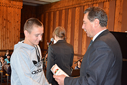 Начальнік аддзела адукацыі, спорту і турызму райвыканкама В. В. Мянькова ўручыла ўзнагароды пераможцам музычных і іншых творчых конкурсаў абласнога, рэспубліканскага і міжнароднага ўзроўняў. Колькі талентаў, колькі дасягненняў і поспехаў толькі за адзін год. І, гледзячы на зал, можна ўпэўнена сцвярджаць, што на наступны год будзе не менш, бо ў зале многа зусім юных, якім яшчэ не адзін год вучыцца ў школе, а значыць, як адзначыла Валянціна Васільеўна, іх здольнасці будуць развівацца і квітнець. Яна выказала падзяку бацькам, якія выхоўваюць такіх таленавітых дзяцей, настаўнікам, якія, не шкадуючы часу, працуюць з дзецьмі, заклікала вучняў шанаваць бацькоўскі дом і родны край.
