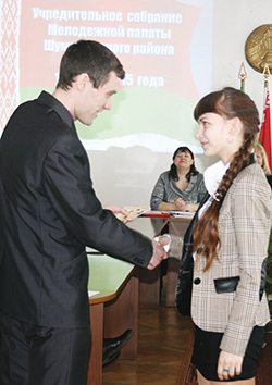 Напрыканцы пасяджэння А. Ю. Хмарын уручыў сямі членам Маладзёжнай палаты членскія білеты і значкі Беларускага рэспубліканскага саюза моладзі. А намеснік начальніка аддзела ідэалагічнай работы, культуры і па справах моладзі райвыканкама В. Г. Навіцкая ўзнагародзіла Дзмітрыя Емяльянава дыпломам і каштоўным падарункам за перамогу ў раённым конкурсе, прысвечаным Году гасціннасці, які праводзіўся ў мінулым годзе.