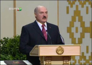 В присутствии высших должностных лиц страны, а также многочисленных приглашенных на инаугурацию Александр Лукашенко, положив правую руку на Конституцию Беларуси, произнес слова присяги: «Вступая в должность Президента Республики Беларусь, торжественно клянусь верно служить народу Республики Беларусь, уважать и охранять права и свободы человека и гражданина, соблюдать и защищать Конституцию Республики Беларусь, свято и добросовестно исполнять возложенные на меня высокие обязанности».