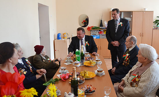 У цёплай сяброўскай атмасферы прайшла раніцой 9 мая сустрэча старшыні райвыканкама У. П. Кураннога з ветэранамі Вялікай Айчыннай вайны. К. В. Мацвеенка, А. Н. Пятрова, Р. М. Бяззубенка, П. З. Лемешаў успаміналі свае франтавыя і партызанскія будні, узгадвалі пасляваенныя гады. Яны выказвалі падзяку за клопат дзяржавы, раённых уладаў да ветэранаў.