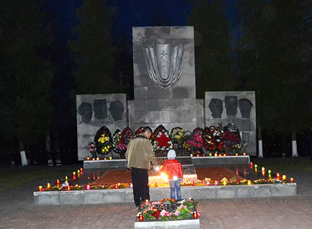 Хвіліна маўчання і мірныя залпы ў гонар Перамогі, языкі полымя Вечнага агню і яркае полымя з цюльпанаў, словы ўдзячнасці ветэранам і абяцанне стваральнай працай мацаваць заваяваны імі мір – ля брацкіх могілак у Шуміліне прайшоў тэатралізаваны мітынг “Ля вечнага агню”.