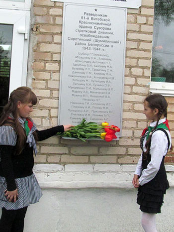 Урачыстасці працягваюцца ля Мікіціхінскай школы. Тут адкрываецца мемарыяльная дошка ў гонар удзельніка вызвалення Шумілінскага раёна Ігара Паўлавіча Посахава. Асаблівую шчымлівасць моманту дадае прысутнасць на мерапрыемстве яго дачкі.