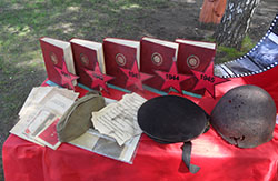Побач размясцілася выстава “Дзякуй вам за Перамогу”, прысвечаная ветэранам Вялікай Айчыннай вайны, якія пражываюць на тэрыторыі нашага раёна. На выставе “Салдацкі прывал” можна было ўбачыць плашч-палатку, гармонік, самаробную запальнічку, зробленую з гільзы, салдацкую фляжку і іншыя рэчы ваеннага часу.