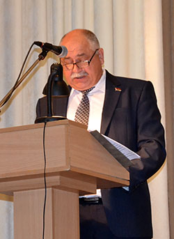 З дакладам па першым пытанні выступіў выконваючы абавязкі старшыні райвыканкама В. Ц. Мянькоў, які падрабязна прааналізаваў сацыяльна-эканамічнае развіццё раёна за пяць гадоў, акрэсліў асноўныя задачы па развіцці рэгіёна да 2020 года.