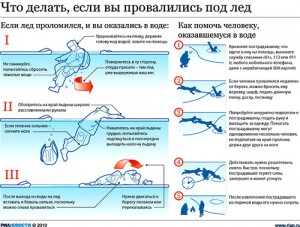 – Калі вы праваліліся пад лёд, перш за ўсё, скіньце з сябе рукзак, рыбацкую скрыню. Клічце на дапамогу, раскінуўшы рукі ў бакі. Павярнуўшыся ў бок, адкуль вы ішлі, спрабуйце легчы на лёд спінай, і, злёгку абапіраючыся аб беражок лёду, адштурхоўвайцеся нагамі ад лёду насупраць. Заняўшы гарызантальнае становішча, выцягніце з вады адну нагу, пасля, нахіліўшыся ў той жа бок, выцягніце другую. Выбраўшыся з вады, неабходна паціху адпаўзці ў бяспечнае месца, пасля чаго неадкладна ісці ў населены пункт для абагрэву, прасушкі адзення. Каб дапамагчы чалавеку, які праваліўся пад лёд, неабходна асцярожна падпаўзці бліжэй, кінуць яму вяроўку, палку, шаль, адзенне і дапамагчы яму выбрацца на лёд.