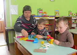 “У будынак былой пачатковай школы мы перайшлі два гады таму, – кажа загадчык дзіцячага сада І. В. Пруднікава. – Тут цёпла і ўтульна, створаны ўсе ўмовы для выхавання дзяцей”. Іна Віктараўна хваліла выхавальніцу садка Ларысу Васільеўну Каваленка (на здымку), якая ўмела чаргуе адукацыйную і гульнявую дзейнасць дзяцей і заўсёды добра рыхтуе шасцігодак да школы. У дзіцячым садку працуе гурток “Умелыя рукі” і клуб “Крылаты дазор”.
