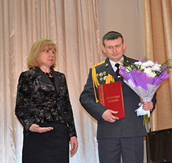 Супрацоўнікаў раённай міліцыі віншавала са святам старшыня раённага Савета дэпутатаў І. М. Новікава. Ад імя жыхароў раёна Ірына Мікалаеўна пажадала міліцыянерам поспехаў у штодзённай адказнай і карпатлівай рабоце, уручыла Ганаровую грамату раённага Савета дэпутатаў начальніку аддзялення крымінальнага вышуку С. І. Бяржаніну (на здымку).