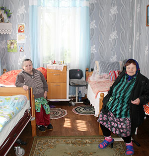 Для многіх аддзяленне кругласутачнага знаходжання стала ўжо родным домам. Некаторыя знайшлі тут сяброў. Як вось гэтыя дзве жанчыны – Е. А. Голубева з Мікіціхі і В. І. Чугаева з Ходараўкі (на здымку). У кожнай жанчыны – свая жыццёвая гісторыя, але зараз яны разам у агульнай палаце, у іх адзіны занятак – вязанне. Праўда, жанчыны мараць, каб іх прыйшлі праведаць хоць далёкія родныя – хочацца некаму падарыць на памяць свой выраб.