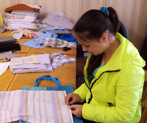 Другі накірунак работы – пашыў вырабаў. За гэты час дзяўчынкі на чале з І. У. Кулікавай і В. М. Якубёнак пашылі восем камплектаў штор для гімназіі, 25 ільняных сумак, 160 ручнікоў. Тут варта заўважыць, што шыць ніхто не ўмеў, а таму спачатку прыйшлося асвойваць азы гэтага рамяства. Цяпер дзяўчынкі могуць пахваліцца і роўнымі строчкамі, і высокай прадукцыйнасцю працы. А самае галоўнае, што гэта ўменне застанецца з імі назаўжды, а яно, вядома, не перашкодзіла яшчэ ніводнай жанчыне. Ручнікамі, напрыклад, яны падзеляцца з прытулкам і ТЦСАН, а сумкі спатрэбяцца для прызоў пераможцам і ўдзельнікам разнастайных конкурсаў і акцый.
