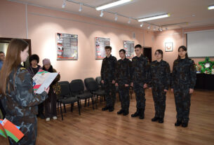 Падчас патрыятычнай акцыі “Мы памятаем і ганарымся!” моладзь усклала кветкі і вянкі да мемарыяльнага комплексу.