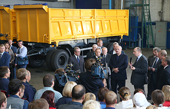 О конкретных производственных планах в присутствии трудовых коллективов главе государства и работникам предприятий подробно рассказали министр промышленности Виталий Вовк и гендиректор ОАО «МАЗ» Дмитрий Катеринич.