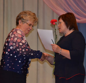 Граматамі аддзела адукацыі, спорту і турызму райвыканкама работнікаў устаноў адукацыі ўзнагародзіла начальнік аддзела В. В. Мянькова.