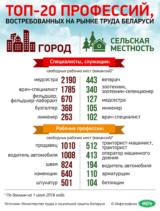 Наш раён – сельскагаспадарчы. Менавіта таму большасць працоўных вакансій прадстаўляюць сельгаспрадпрыемствы, прычым патрэбны як спецыялісты з пэўнай адукацыяй, так і рабочыя спецыяльнасці. Ветэрынарныя ўрачы і фельчар патрэбны ў КУСГП “Сіроцінскі”, ААТ “Лаўжанскае”, ААТ “Прыдзвінскі”, УП “Шумілінскі райаграсэрвіс” і ў ААТ “Ляжні”. У арганізацыях ім прапануюць зарплату ў 300,00 рублёў. Галоўныя заатэхнікі патрэбны ў ААТ “Прыдзвінскі” (зарплата 464,98 рублёў) і ААТ “Прыазёрны мір” (зарплата 523,61 рублёў), галоўны бухгалтар – у КУСГП “Ульскі” (зарплата 500,00 рублёў), галоўныя эканамісты – у КУСГП “Ульскі” (зарплата 500,00 рублёў) і ў СФГ “Раднік” (зарплата 300,00 рублёў), галоўнага агранома – у КУСГП “Мішневічы”(зарплата 360,00 рублёў), галоўны энергетык – у ААТ “Прыдзвінскі” (зарплата 464,98 рублёў), аграном (зарплата 300,00 рублёў) – у ААТ “Прыдзвінскі”, заатэхнікі – у КУСГП “Сіроцінскі” (зарплата 270,00 рублёў) і ААТ “Прыазёрны мір” (зарплата 331,71 рублёў), прараб – у ААТ “Лаўжанскае” (зарплата 260,00 рублёў). Ёсць на вёсцы і вакансіі працоўных спецыяльнасцяў: аператараў машыннага даення чакаюць у ААТ “Прыдзвінскі” (зарплата 300,00 рублёў) і ў ААТ “Прыазёрны мір” (зарплата 250,00 рублёў), жывёлавода – у ААТ “Прыдзвінскі” (зарплата 300,00 рублёў), слесара-рамонт-ніка – у ААТ “АграБаравінка”(зарплата 380,00 рублёў).