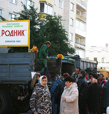 І хаця многія бурчалі, што пачатак месяца – не зусім удалы час, бо авансы ўжо закончыліся, а зарплат і пенсій яшчэ не было, чэргі выстраіліся літаральна да кожнай гандлёвай кропкі. Набыць можна было і шкарпэткі, і сувенірную прадукцыю, і пасадачныя грунты, і дровы, але пакупнікоў больш прываблівалі прылаўкі з харчовай прадукцыяй ды яшчэ кропкі з саджанцамі пладовых і дэкаратыўных раслін.