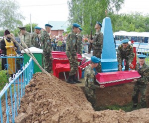 Яны выстаялі, салдаты 40-х гадоў. І як пераемнасць у воінскім абавязку перад Радзімай — перазахаванне з усімі атрыбутамі: воінскі салют, ганаровая вахта, парадны марш па вясковай дарозе, як па пляцу. Усё гэта — у імя памяці, каб ніколі не забыліся людзі на тое, што нясе нам вайна.