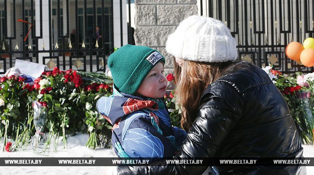 28 марта, Минск /Корр. БЕЛТА/. Беларусь в знак скорби и солидарности с Россией, где 28 марта объявлен общенациональный траур в связи с трагедией в Кемерово, приспустила госфлаги и отменила развлекательные программы в телеэфире. Об этом БЕЛТА сообщили в Администрации Президента Беларуси. По поручению главы государства Александра Лукашенко в Беларуси 28 марта приспущены государственные флаги над госучреждениями. В эфире республиканских и региональных СМИ отменили трансляции развлекательных программ. Кроме того, рекомендовано воздержаться от проведения подобных мероприятий, включая те, которые организовываются в общественных местах.