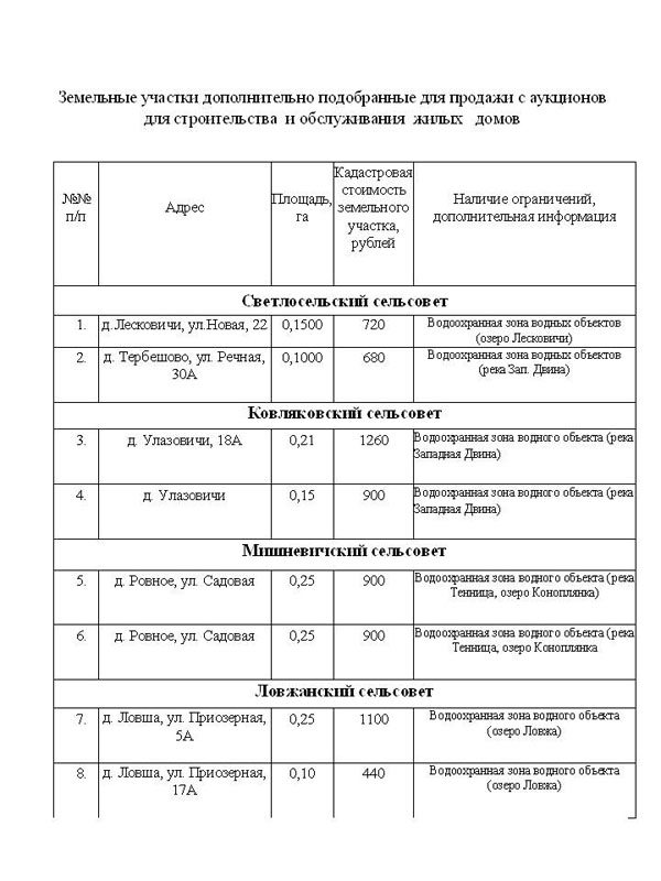 Здесь вы можете посмотреть списки предлагаемых участков, схемы их расположения в населённых пунктах района: