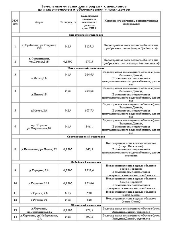 Шумилинский райисполком предлагает земельные участки, расположенные в красивейших местах района, на берегах рек и озёр, для строительства жилых домов.
