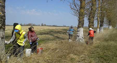 На час правядзення рэспубліканскага суботніка калектыў рэдакцыі газеты “Герой працы” паступіў у распараджэнне ДРБУ №204. Прадпрыемства забяспечыла ўсім неабходным інвентаром і пакінула на ўчастку дарогі паміж Шумілінам і вёскай Прыазёрная. Перад намі стаяла задача пабяліць больш за 200 дрэваў, з якой мы паспяхова справіліся.
