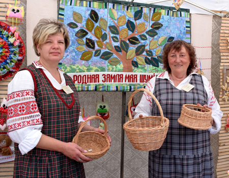 А тым часам майстры Шумілінскага дома рамёстваў прадстаўлялі свае рамёствы на абласной выставе-продажы, якая разгарнулася ў раёне “Тэатральнага” кафэ. Вось знакаміты на ўсю вобласць майстар па саломапляценні Наталля Сцержанкова дае майстар-клас.