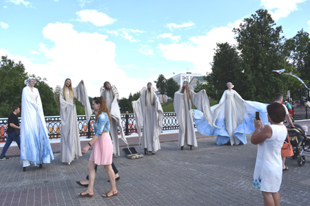 Насупраць выставы майстроў Віцебскай вобласці ў раёне тэатра “Лялька”, на пляцоўках каля Пушкінскага моста і далей па вуліцы Талстога набіраў абароты фестываль вулічнага мастацтва “На сямі вятрах”. Наведвальнікам “Славянскага базару” палюбіліся “жывыя” статуі, з якімі рабіліся сотні сэлфі, перформансы, выступленні музыкантаў і артыстаў, паэтаў і дзі-джэяў, плэнеры мастакоў, вогненнае шоу і многае іншае, чым не стамляецца здзіўляць фестываль у фестывалі “На сямі вятрах”.