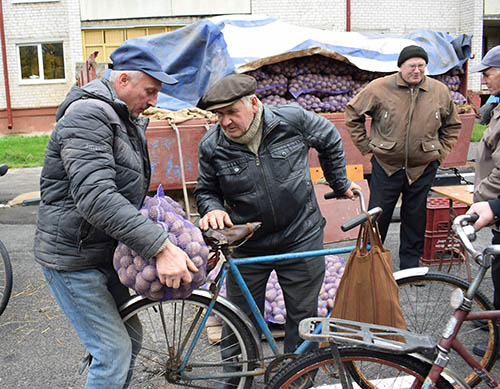 Для многіх гараджан кірмаш пачаўся з чаргі да банкамата: вядома ж, за вядро журавін ці жывых труса з пеўнем банкаўскай карткай з гаспадаром не разлічышся – патрэбны наяўныя грошы. Да 8-мі гадзін на гарадской плошчы – традыцыйным месцы кірмашовых гулянняў – ішоў ужо бойкі гандаль. Больш за тое, некаторыя да гэтага часу ўжо паспелі пазбавіцца ад свайго тавару. Напрыклад, Леанід Кавалеўскі, гаспадар з Мішкавічаў, бульбу па 10 рублёў за сетку (а прывёз ён 15 сетак) распрадаў літаральна за 15 хвілін. СФГ “Раднік” паставіла на кірмаш дзве тоны бульбы па 35 капеек за кілаграм, фермер з Бешанковічаў прасіў за другі хлеб па 12 рублёў за сетку, а шумілінскі фермер Валянціна Ляснічая – па 14 рублёў…