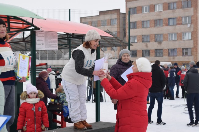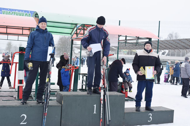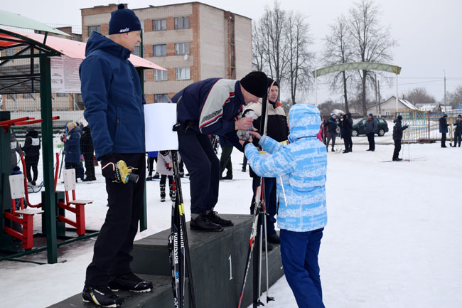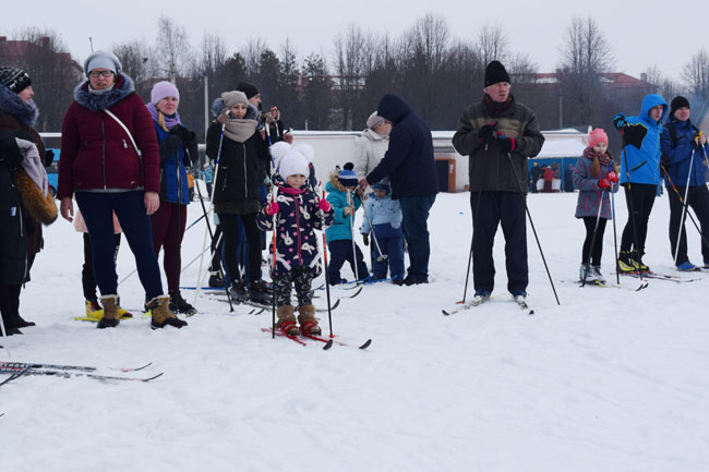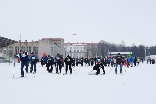 А тут і пятрушкі-забаўнікі заклікаюць на пастраенне, дзе ўдзельнікаў свята вітала кіраўніцтва раёна і ганаровы госць спаборніцтваў – член юніёрскай зборнай Беларусі па біятлоне, прызёр міжнародных спаборніцтваў Вольга Гаўрылкіна. Каманды арганізацый і прадпрыемстваў раёна выстройваюцца перад імправізаванай сцэнай. Выконваючая абавязкі старшыні райвыканкама намеснік старшыні Святлана Цімашэнка павіншавала ўсіх са святам спорту, адзначыла, што на гэтыя спаборніцтвы штогод збіраюцца сапраўдныя аматары лыжнага спорту ўсіх ўзростаў, падтрымліваючы сувязь пакаленняў. Менавіта з такіх стартаў пачынаўся шлях у вялікі спорт для Вольгі Гаўрылкінай, Ганны Сола і іншых вядомых спартсменаў-землякоў, падкрэсліла Святлана Віктараўна. Яна пажадала ўсім добрых стартаў і пераможных фінішаў.