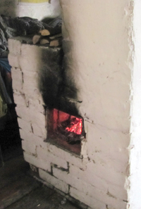 Заходзім у знешне дагледжаны дом. У хаце цёпла, паліцца грубка. Але грубка ўвогуле без дзверцаў. А на ёй яшчэ і дровы сушацца!