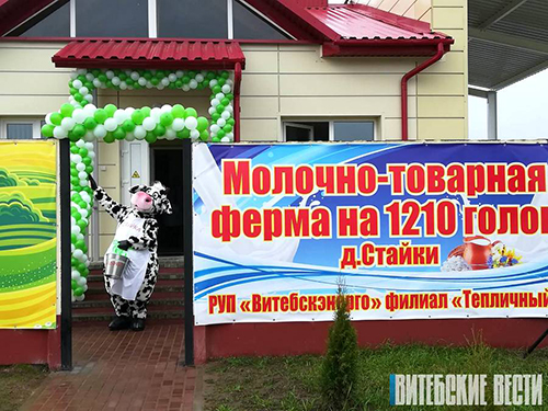 Торжественное открытие роботизированной молочнотоварной фермы на 1210 голов КРС в деревне Стайки Оршанского района состоялось 1 ноября с участием председателя облисполкома Николая Шерстнёва, министра энергетики Республики Беларусь Виктора Каранкевича и других официальных лиц.