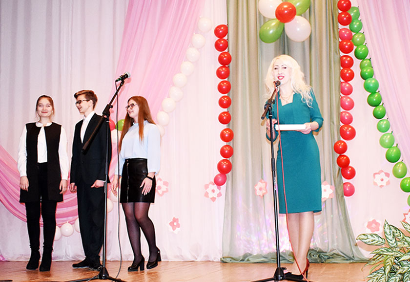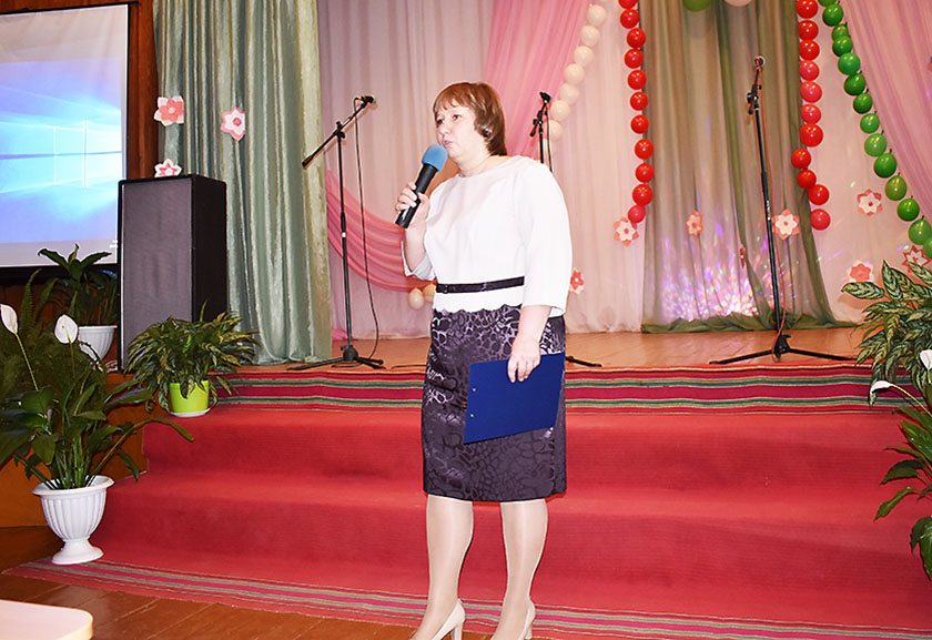 Пераможцаў конкурсу віншуе начальнік аддзела па адукацыі райвыканкама Валянціна Мянькова. Фота Алены Садохінай
