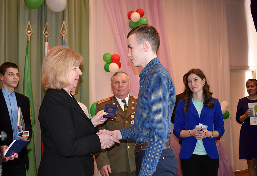 Старшыня раённага Савета дэпутатаў Ірына Новікава павіншавала прысутных з дзяржаўным святам, уручыла пашпарты і падарунак – кнігі «Я – грамадзянін Рэспублікі Беларусь»: васьмікласніку Уладзіміру Уладзімарэнку і вучню 7-га класа Уладзіславу Аверчанку. Выконваючая абавязкі першага сакратара райкама БРСМ Вікторыя Бяляева падарыла ім Канстытуцыю Беларусі і сувеніры. Завяршылася мерапрыемства акцыяй «Спяваем гімн разам».