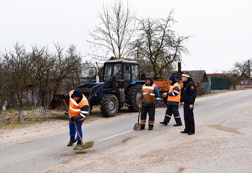 – Рамантуем ямы з дапамогай гранітнага шчэбеню і бітумнай эмульсіі, – расказалі рабочыя, якія працавалі ў Башнях. – Наступілі цёплыя дні, таму ў нас пачынаецца інтэнсіўная работа.