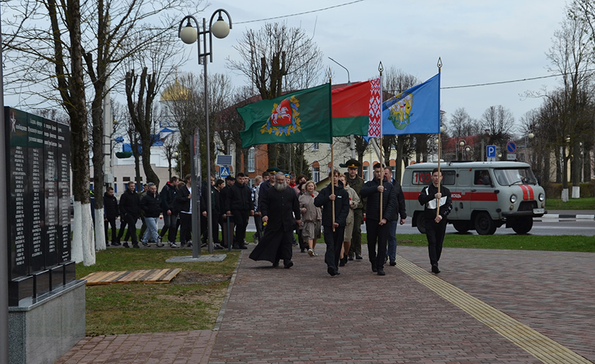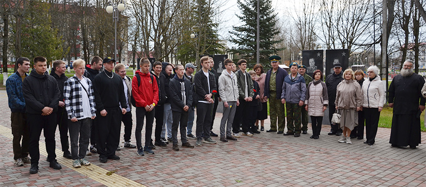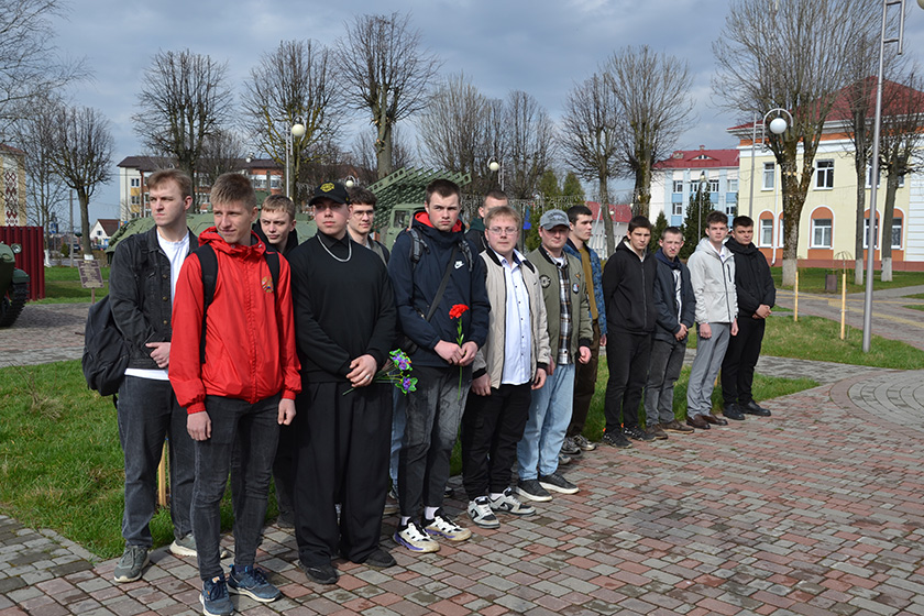 Будучыя салдаты ўсклалі кветкі на брацкія могілкі і да помніка ў Скверы воінскай славы, ушанавалі памяць загінуўшых хвілінай маўчання