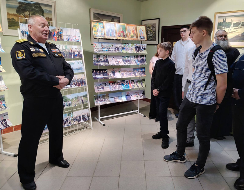 Прызыўнікі пазнаёміліся з фотавыставай, якую падрыхтавалі члены раённай арганізацыі ГА «Беларускі саюз ваенных маракоў»