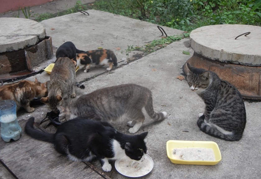 «Вельмі шкадую, затое і кармлю». У доме № 14 па вул. 40 год Кастрычніка мы так і не разабраліся, каму належаць каты. Кажуць, некаторыя з іх свае, дамашнія, (але чые, ніхто не прызнаўся), іншыя – невядома адкуль. Усе яны свабодна ходзяць і выходзяць з пад’езда. І ў гэтым вінаваты самі жыльцы, якія раскрываюць дзверы. У пад’ездзе, дзе мы ўбачылі пустыя міскі з-пад ежы, быў непрыемны пах. Бяздомных катоў прыкормліваюць некаторыя жыхары. Вось пазіцыя гэтых дабрадушных людзей: