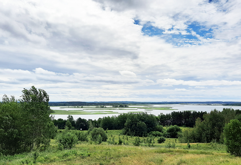 Наведалі мы і славутую гару Маяк – самую вядомую аглядавую кропку Браслаўскіх азёраў. Від, які адкрываецца з яе на вадаёмы Струста і Снуды, апісаць словамі немагчыма. Дарэчы, там можна набыць сувеніры з браслаўскім каларытам.