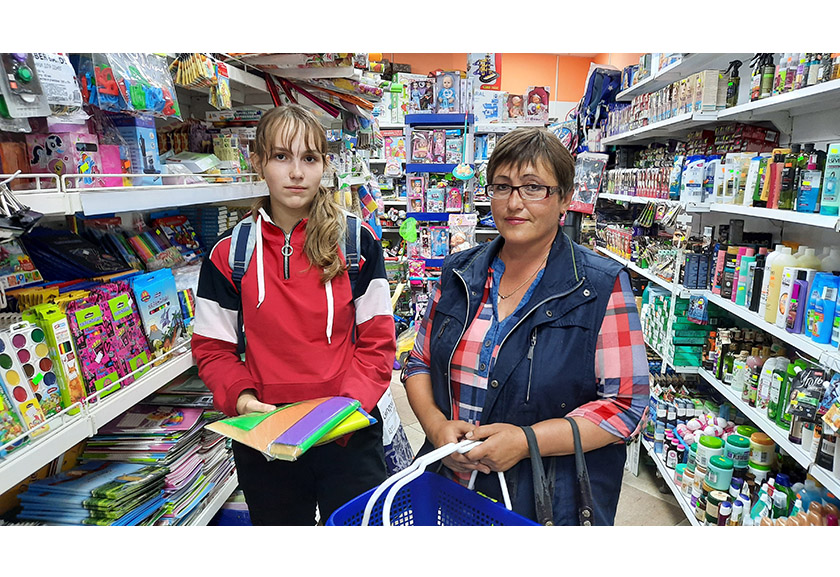 Галіна Карнякова, што прыйшла ў краму разам з дачкой, васьмікласніцай Ганнай, падлічыла, што на вопратку і абутак для школьніцы патраціла крыху больш за 200 рублёў. Трэба купіць яшчэ канцылярскія, спартыўны касцюм.