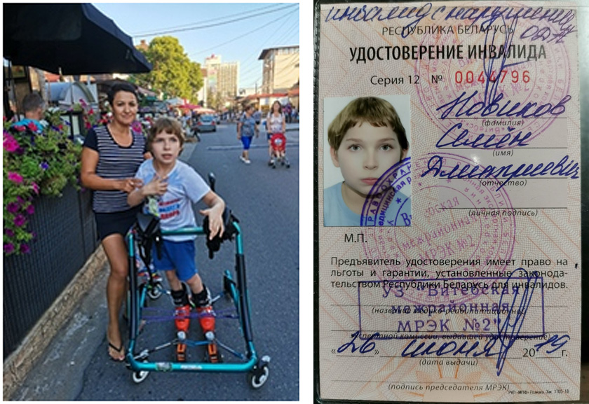 Семочке нельзя было реагировать на звуки, свет и прочее. Поэтому его посадили на фенобарбитал в высоких дозах, на котором он находился три месяца. Три месяца в детской больнице казались адом! Семочка выжил, но остался инвалидом. У него было сильное кровоизлияние в оба глаза. Врачи говорили, что правый глазик, скорее всего, видеть не будет. На данный момент у него дальнозоркость, астигматизм обоих глаз. Семка сам не сделал ничего… Он был полностью лежачим… Каждый раз казалось, что это не надолго, и скоро всё пройдёт… Из года в год вся наша семья ждала чуда, но чуда не произошло… Все что мы имеем сейчас — результат огромного труда и терпения. Спустя 10 лет сыночек научился сидеть, ползать, стоять, ходить за руку с поддержкой, разговаривать. Было сделано три операции в России, после — куча реабилитаций в Беларуси и за рубежом, вследствие чего мы избавились от контрактур коленных, тазобедренных и голеностопных суставов. В этом году Семён перешёл в 5 класс, по программе общего среднего образования для детей с тяжёлым нарушением речи! В связи с ростом и массой тела левая ножка стала «уходить». Произошла сильная деформация стопы, из-за неё пошло вовнутрь колено. Семочка с большим трудом становится на эту ножку, потому что на косточке стоять больно и неудобно. Когда мы были на реабилитации в г.Сочи, нам посчастливилось попасть на консультацию к питерскому хирургу-ортопеду. Была рекомендована операция, первоначально в институте Турнера. Рассмотрев все за и против, мы пришли к выводу, что полное гипсование обеих ножек в нашем случае ни к чему хорошему не приведёт. И все достигнутые ранее навыки мы просто потеряем. Я начала искать клиники, где нам смогут помочь, прооперировав только тот участок, который нам нужен. Посмотрев наши видео и заключения, доктор Хоаким Касаньяс из Испании сказал, что готов взять Семёна для проведения именно операции. Одну косточку нужно вправить, вторую — нарастить. Также доктор сказал, что после такой операции у Семена будет хороший результат. Но если её не сделать вовремя, то уйдёт бедро, спина и колено ещё больше… И тогда будет полная катастрофа. Всё это происходило осенью прошлого года. Операция была назначена на май 2020 года. И мы даже нашли спонсоров. В связи с эпидемиологической обстановкой в стране все планы рухнули. Спонсоров больше нет, денег, соответственно, тоже. Прислали новый счёт и перенесли операцию на сентябрь. Сумма очень большая, нам одним никогда её не собрать. Кроме того, после операции потребуется хорошая реабилитация (разработка), без неё операция не имеет смысла. Я молю вас о помощи сыну, надеюсь на понимание и отзывчивость! Просить всегда очень трудно, но жизнь не оставляет выбора. |