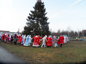 Дзяды Марозы і Снягуркі (усяго пяцьдзясят пар) віншавалі прысутных з Новым годам, спявалі песні, запрашалі да танцаў, разам з дзецьмі кружыліся ў карагодзе. А дзяцей у парку сабралася многа. І ўсім хацелася сфатаграфавацца, ну, хоць з адным Дзедам Марозам, атрымаць з яго навагодняга мяшка цукерак.