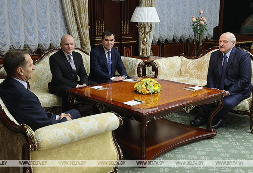 Глава государства отметил, что рад встрече. «Считают, что мы с вами давно не виделись, потому что очень активно сотрудничали, когда вы возглавляли палату парламента Российской Федерации (Сергей Нарышкин в 2011-2016 годах возглавлял Госдуму Федерального Собрания Российской Федерации. — Прим. БЕЛТА). Вы наиболее ярким были политиком на постсоветском пространстве, а потом в силу специфики вашей нынешней работы ушли в тень, как у нас говорят чекисты, — сказал белорусский лидер. — Поэтому я рад с вами встретиться. Наблюдаю и слежу в основном по телевизору из докладов ваших и моих коллег. Президент России очень часто мне рассказывает о вас. Многие документы… Знакомит меня с наработками Службы внешней разведки Российской Федерации там, где касается наших отношений и союзного строительства».