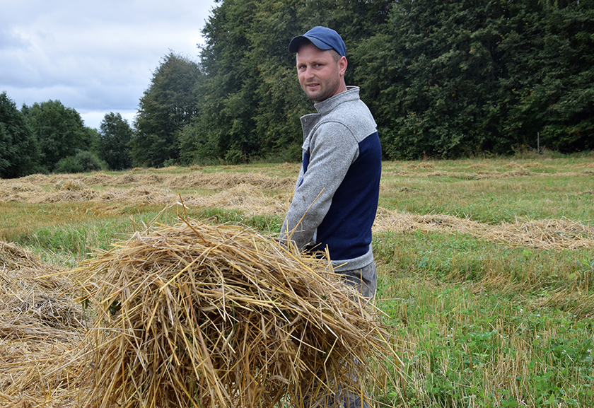 Васіль Маліноўскі з жонкай і двума дзецьмі жыве ў Мікіцісе, а яго падсобная гаспадарка знаходзіцца ў Пабедзе. Ёю на бацькоўскай сялібе Васіль пачаў займацца амаль пяць гадоў таму. Змалку прывучаны да вясковай работы, малады чалавек у 24 гады вырашыў паспрабаваць весці хатнюю гаспадарку. На такі адказны крок – быць гаспадаром – блаславілі бацькі. Яны не шукалі лёгкага шляху для свайго сына, ніколі не акцэнтавалі ўвагу на цяжкасці сялянскай працы, з павагай і любоўю ставіліся да работы на зямлі. Дапамагаюць сыну і зараз.