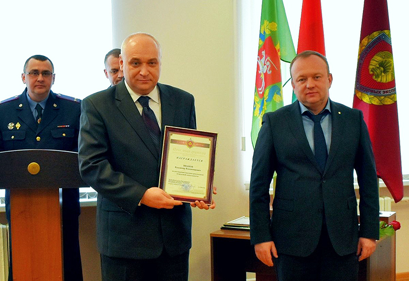 Загадам Старшыні Дзяржаўнага камітэта судовых экспертыз Рэспублікі Беларусь за дасягненне высокіх вынікаў у службовай (працоўнай) дзейнасці Ганаровай граматай Дзяржаўнага камітэта судовых экспертыз Рэспублікі Беларусь узнагароджаны ІВАНОЎ Уладзімір Уладзіміравіч, начальнік сектара судова-медыцынскіх экспертыз Шумілінскага міжраённага аддзела — дзяржаўны медыцынскі судовы эксперт.
