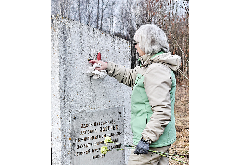 Вёска Заазер’е. У сакавіку 1943 года нямецка-фашысцкія захопнікі загубілі 28 жыхароў і спалілі 12 двароў.