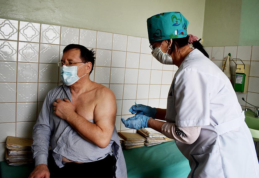 Вакцынацыю праводзіць медсястра прышчэпачнага кабінета Зоя Арцемьева.