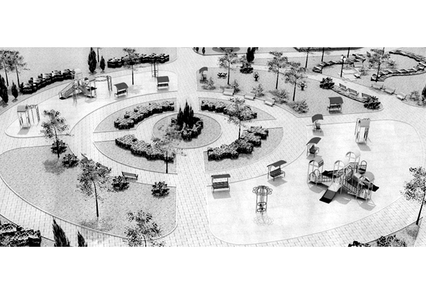 Выгляд дзіцячай зоны новага парку (эскізны малюнак з праекта).