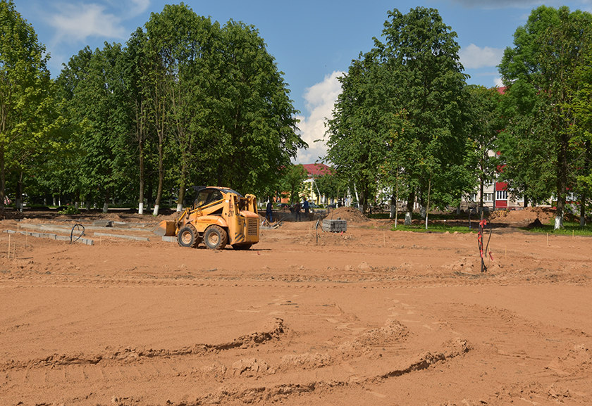 Ужо зараз пачынае набываць абрысы і дзіцячая пляцоўка. «Даволі шмат работы было на падрыхтоўчым этапе, – адзначае Арцём Скрыпкін. – Былі выдалены дрэвы, для выраўноўвання тэрыторыі зроблена пясчаная падсыпка. Дарэчы, завезлі больш за 1200 кубаметраў пяску».